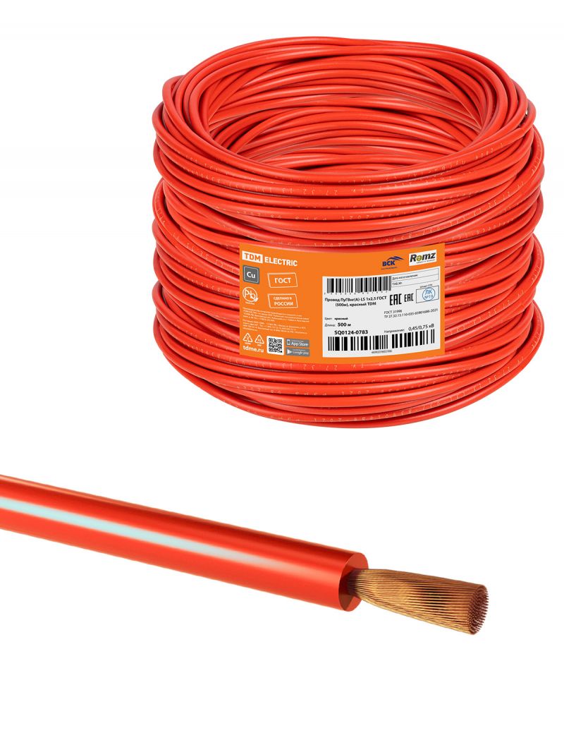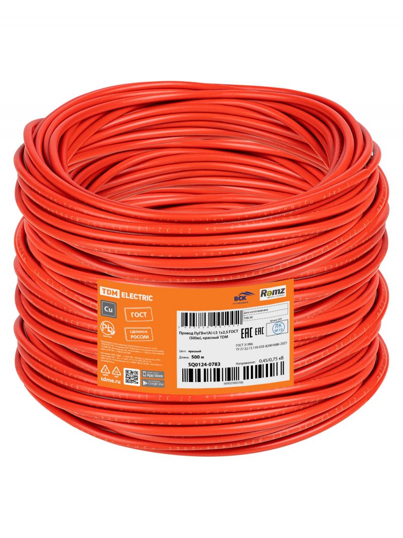 Провод ПуГВнг(А)-LS 1х2,5 ГОСТ (500м), красный TDM