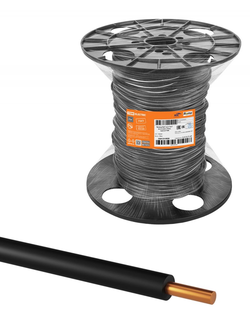Провод ПуВ 1х2,5 ГОСТ на катушке (750м), черный TDM