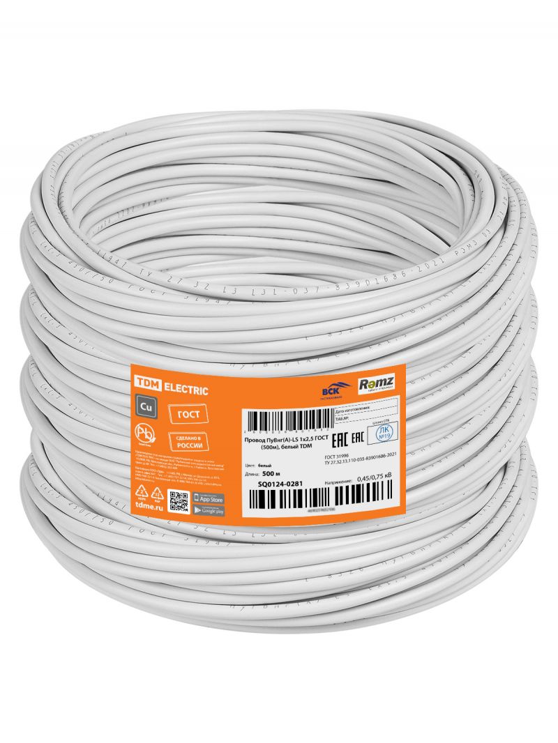 Провод ПуВнг(А)-LS 1х2,5 ГОСТ (500м), белый TDM