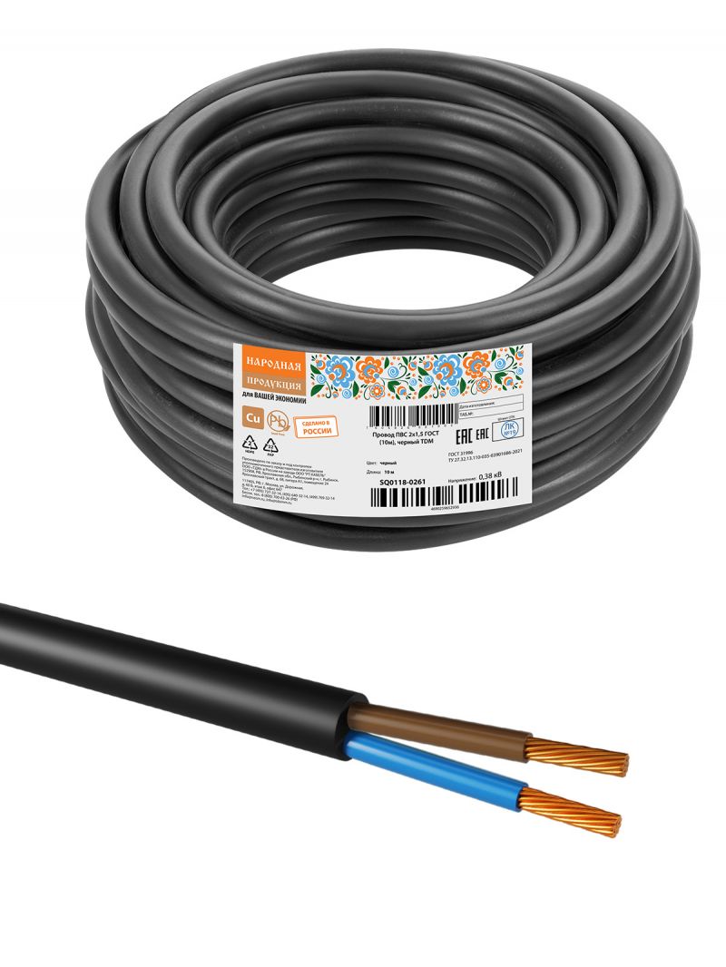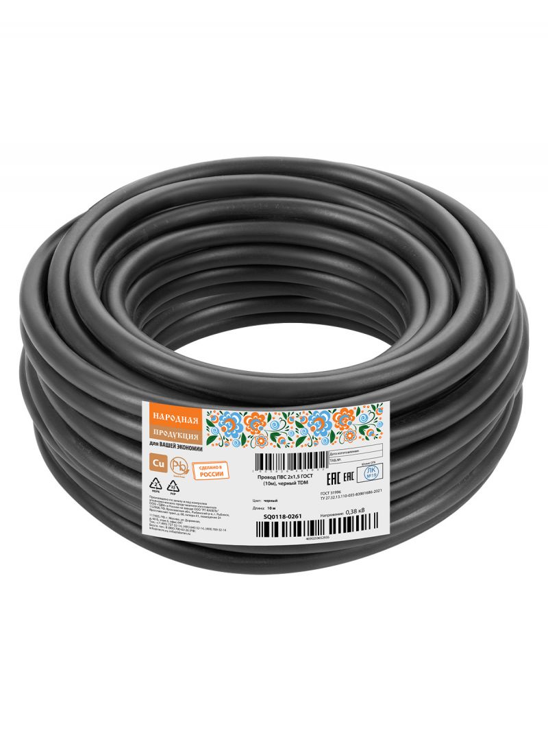 Провод ПВС 2х1,5 ГОСТ (10м), черный TDM