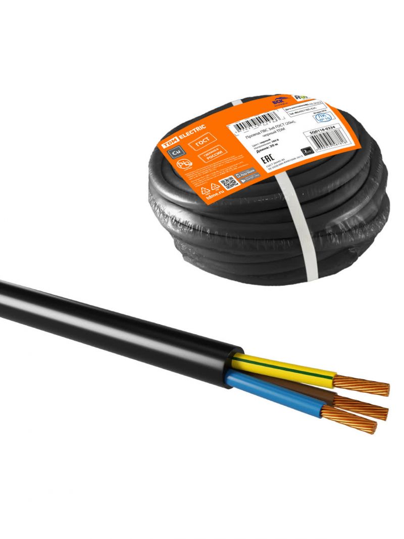 Провод ПВС 3х6 ГОСТ (20м), черный TDM