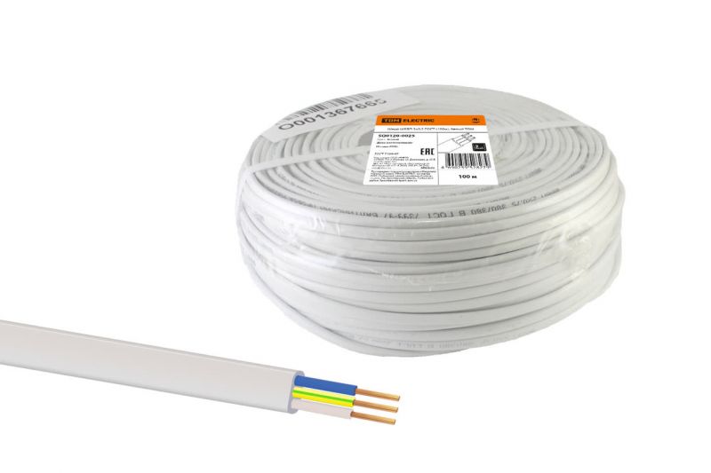 Провод ПВС 3х1 ГОСТ (5м), белый TDM