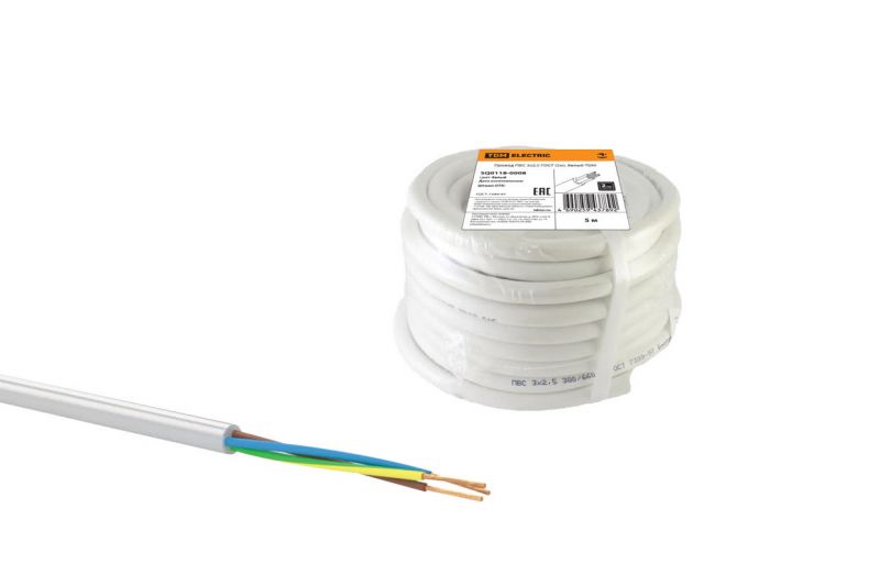 Провод ПВС 3х2,5 ГОСТ (5м), белый TDM