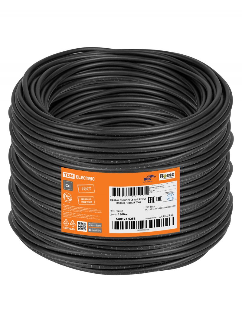 Провод ПуВнг(А)-LS 1х0,5 ГОСТ (1500м), черный TDM