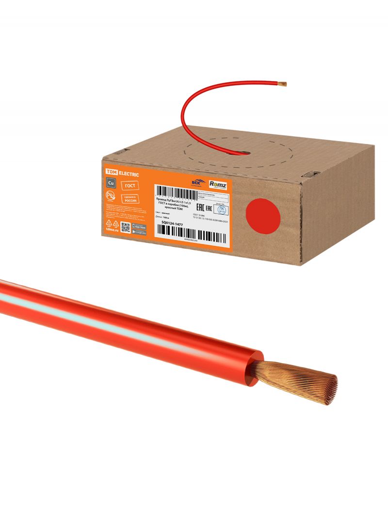 Провод ПуГВнг(А)-LS 1х1,5 ГОСТ в коробке (100м), красный TDM