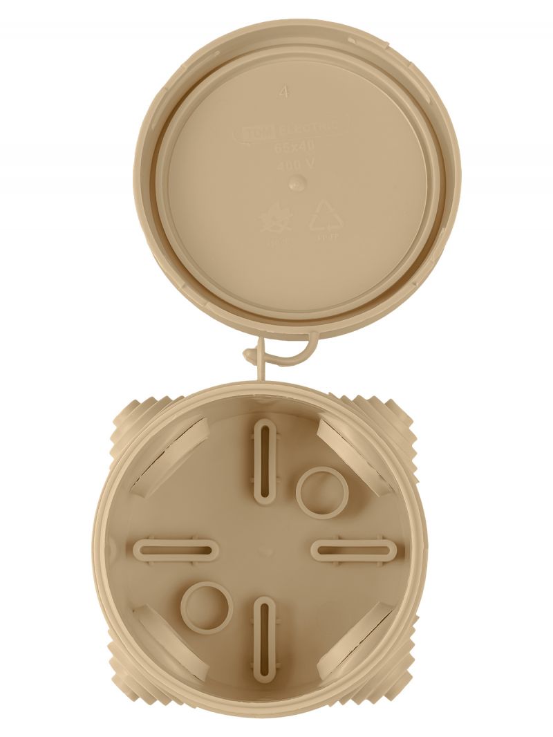 Распаячная коробка ОП D65х40мм, крышка, "ЭКО" (сосна), IP54, 4вх. инд. штрихкод TDM