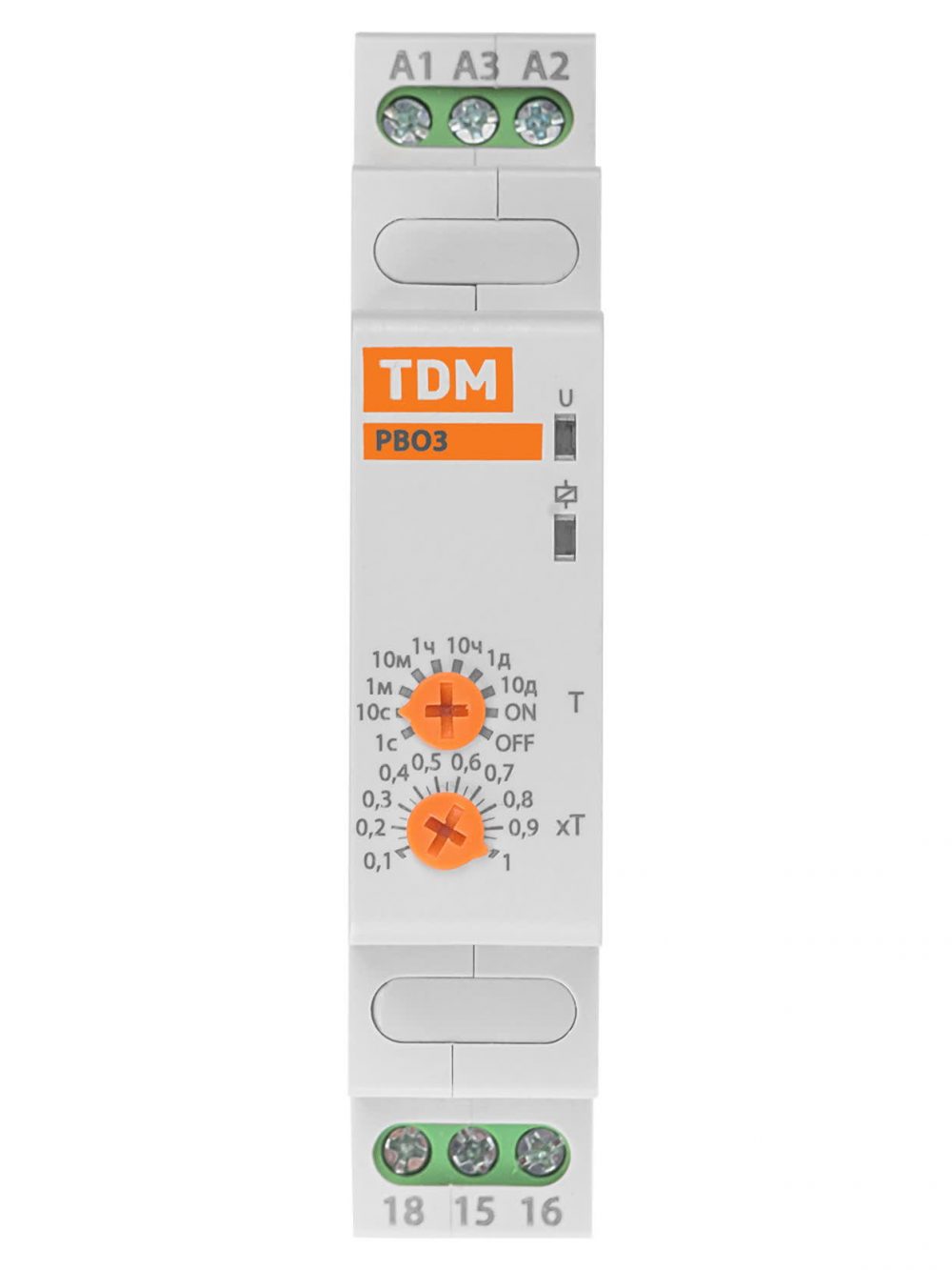 Реле времени РВО3-ВЫК-0,1с/10дн-8А-24/230В-DIN (зад.выкл., 0,1с-10дней, 24/230В AC/DC) TDM