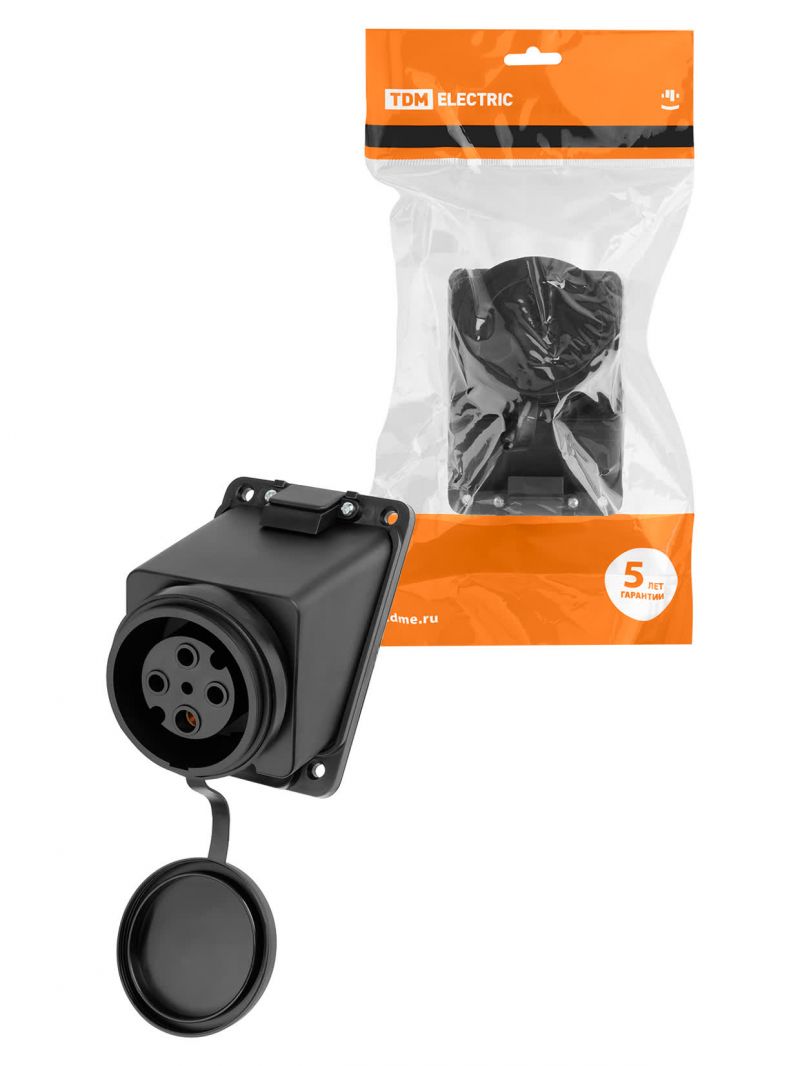 Розетка настенная с загл. наклон. каучук 3Р+РЕ 32А 380В IP44 TDM