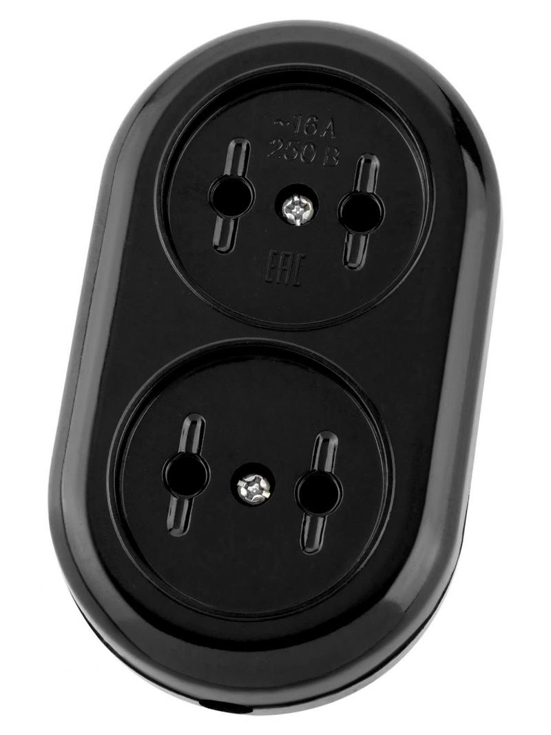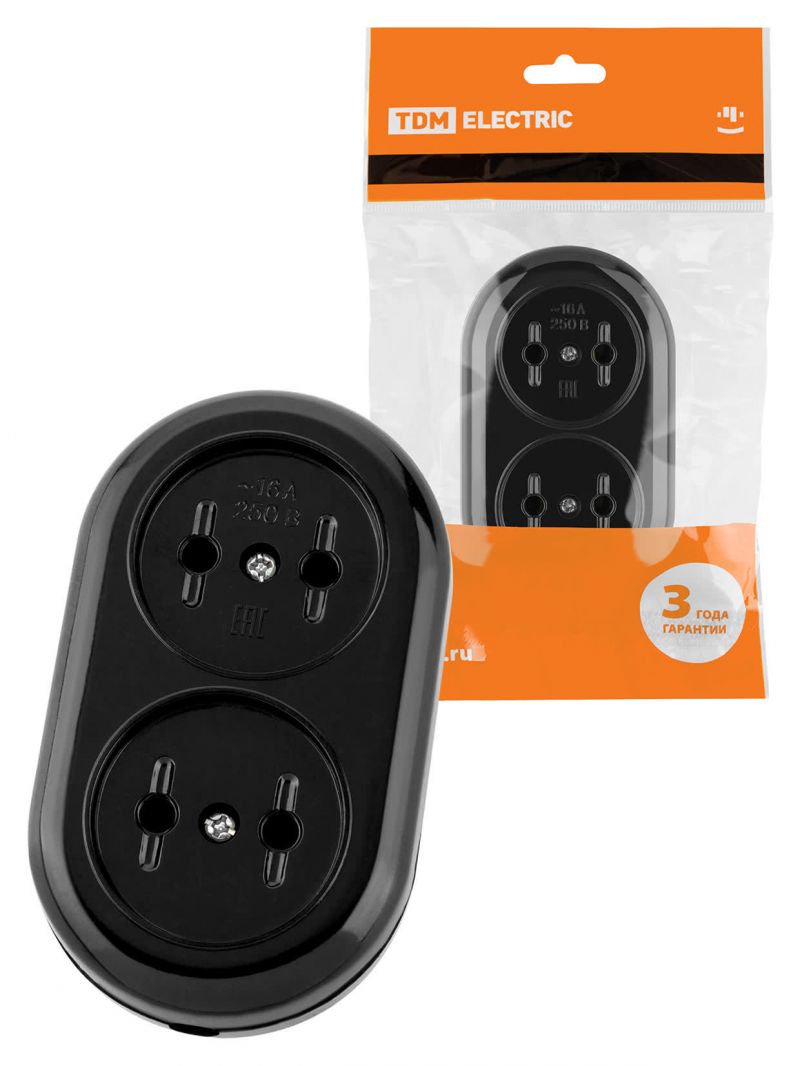 Розеточная колодка 2 гнезда 2П 16А 250B черная "Ретро" (карболит) TDM
