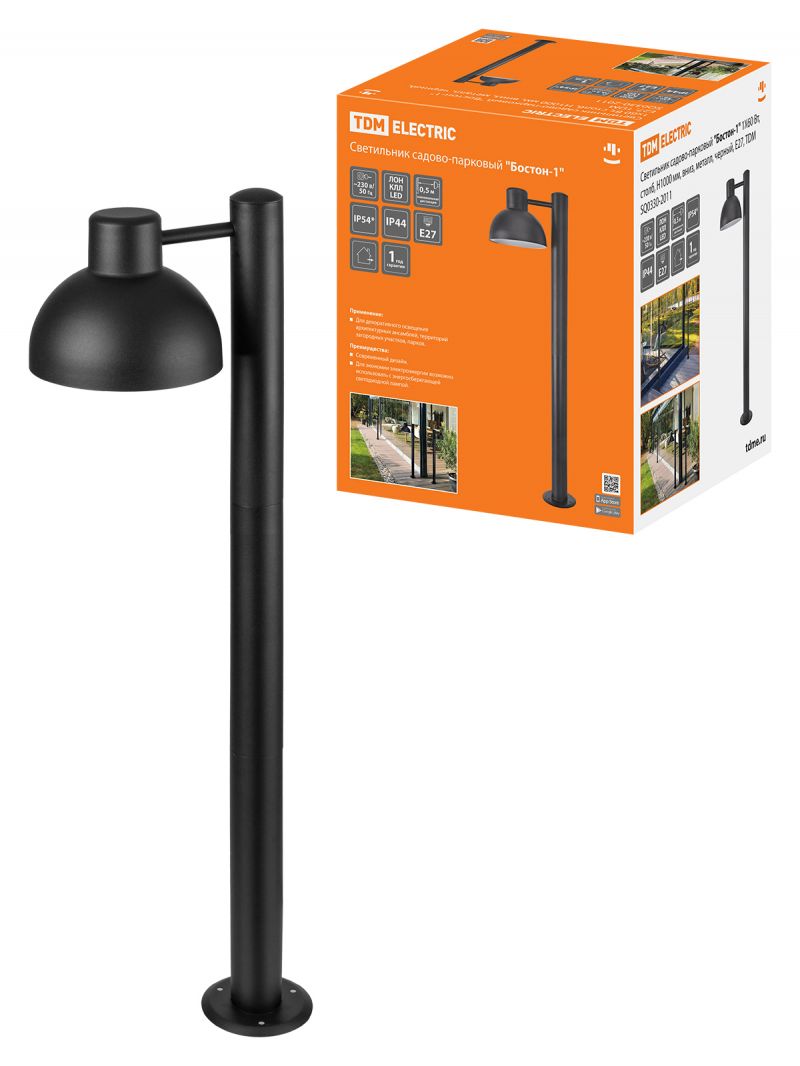 Светильник садово-парковый "Бостон-1" 1x60 Вт, столб, H1000 мм, металл, черный, Е27, TDM