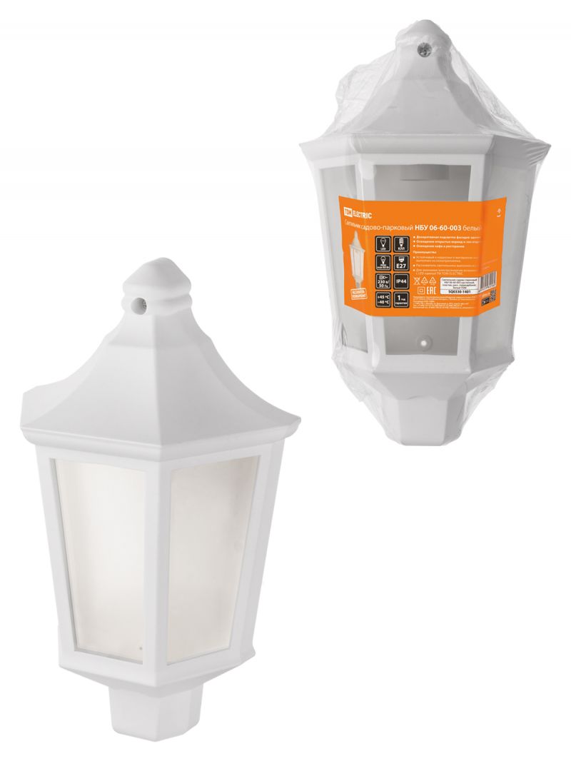 Светильник садово-парковый НБУ 06-60-003 настенный, пластик, расс. поликарбонат, белый TDM