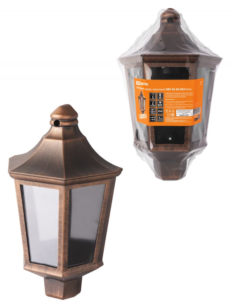 Светильник садово-парковый НБУ 06-60-003 настенный, пластик, расс. поликарбонат, медь TDM