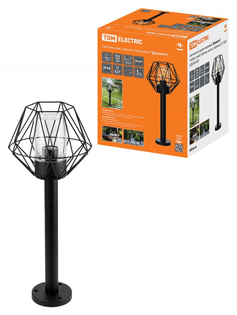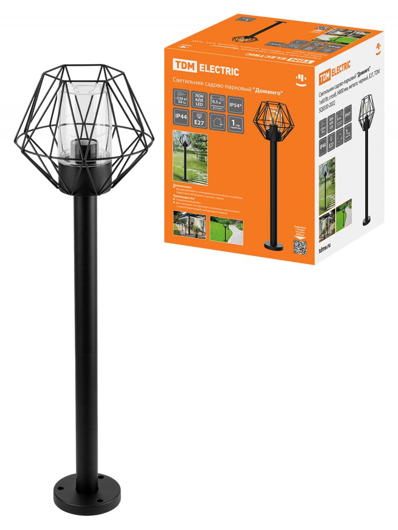 Светильник садово-парковый "Доминго" 1х60 Вт, столб, H800 мм, металл, черный, Е27, TDM