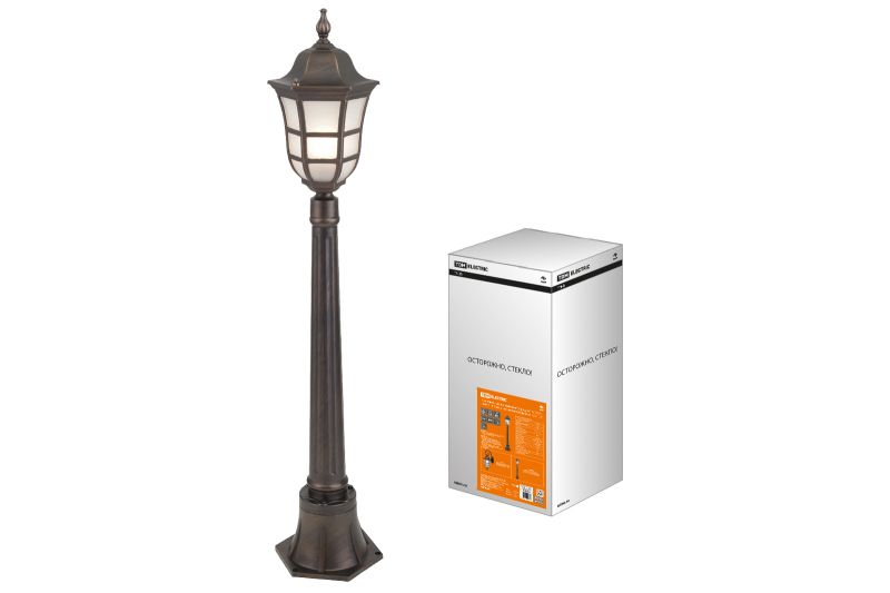 Светильник садово-парковый "Рим" 1х60 Вт, столб, H1050 мм, алюм., янтарное/кофейный, Е27, TDM