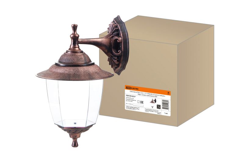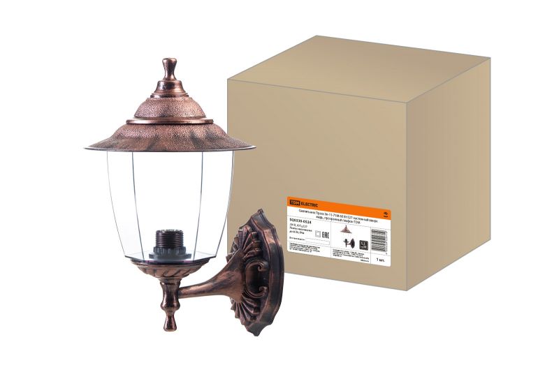 Светильник Прага Эл-11-71М 60 Вт Е27 настенный вверх медь, прозрачный плафон TDM