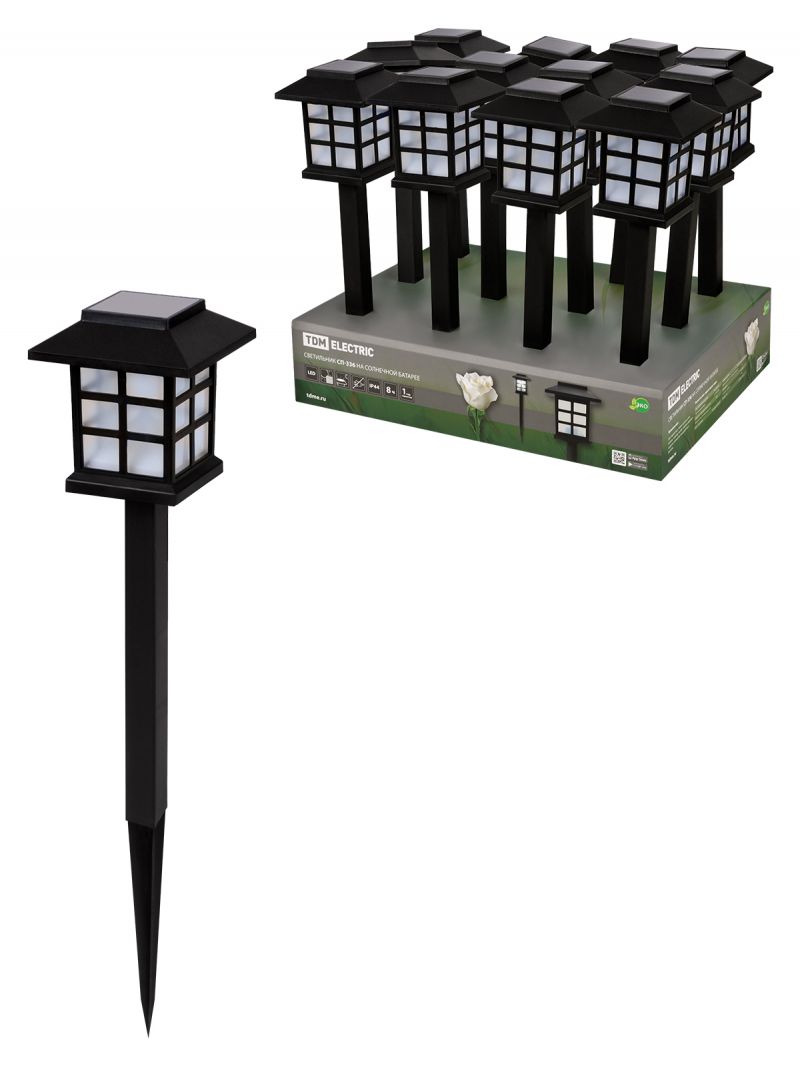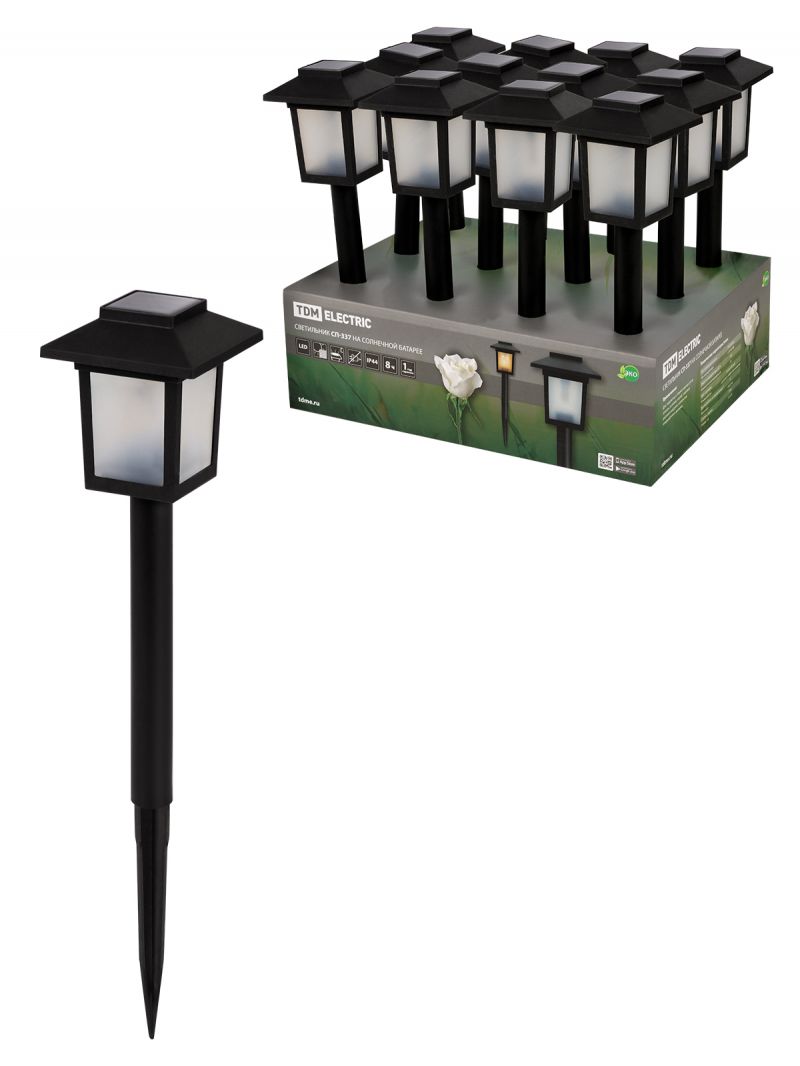 Светильник СП-336 на солнечной батарее, 8,5х8,5х36 см, пластик, черный, ДБ, TDM