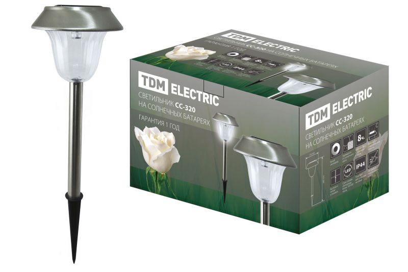 Светильник СС-320 на солнечных батареях, сталь, с выключателем, TDM