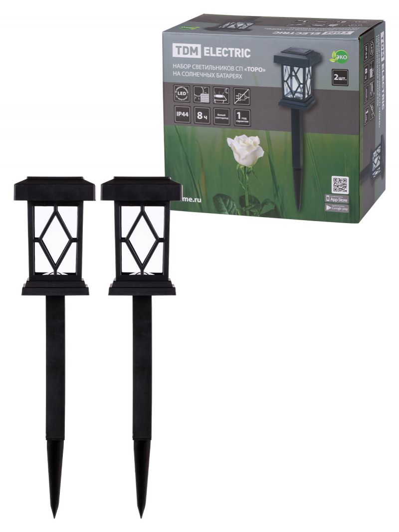 Набор светильников СП "Торо" на солнечных батареях, пластик, 10х44 cм, 2 шт, TDM