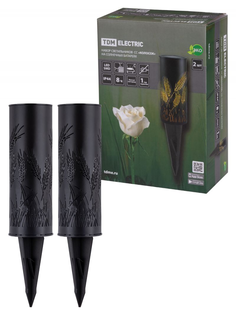 Набор светильников СС "Колосок" на солнечных батареях, сталь, 6х27 cм, 2 шт, TDM