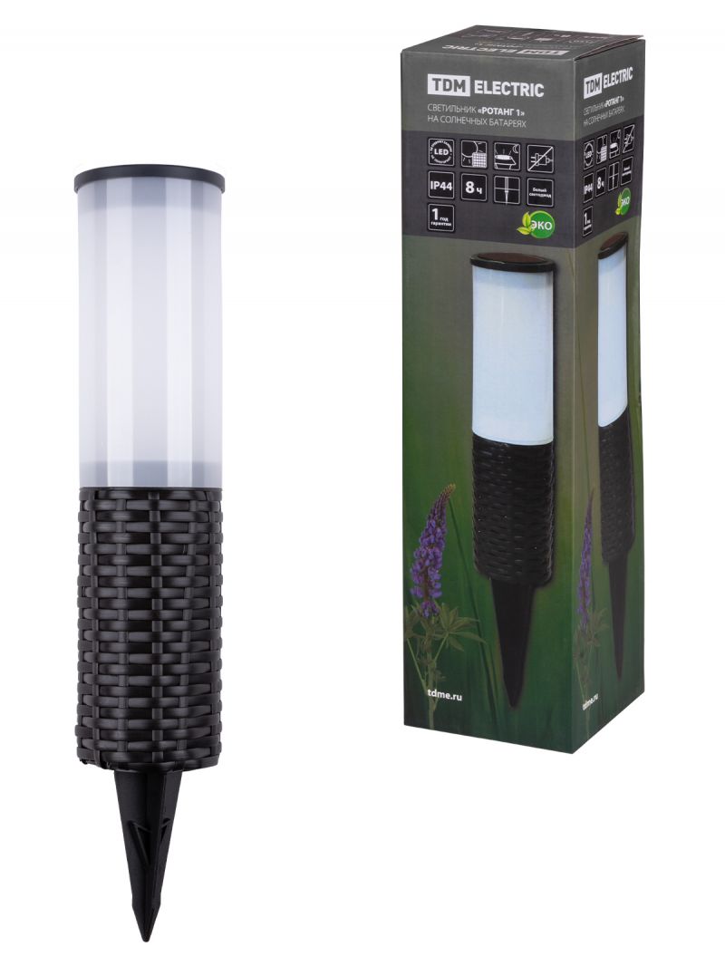 Светильник СС "Ротанг 1" на солнечных батареях, пластик, 7х43cм, TDM