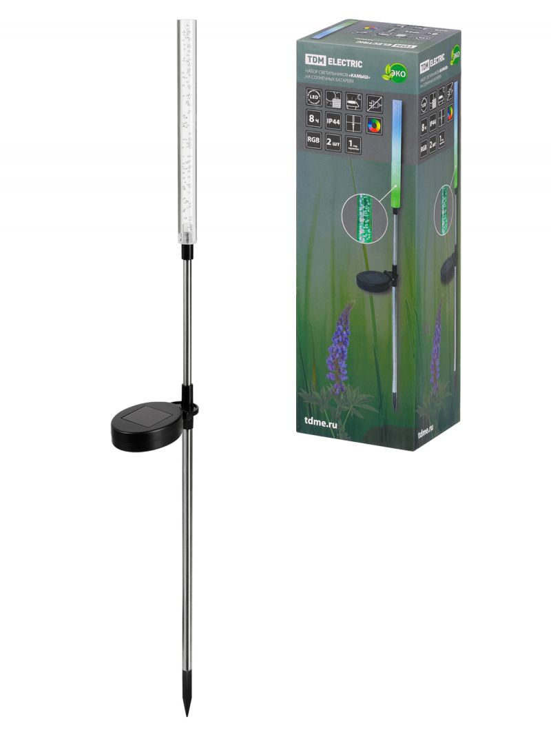 Набор светильников "Камыш" на солнечных батареях, RGB, оргстекло, 1,8х70 cм, 2 шт, TDM