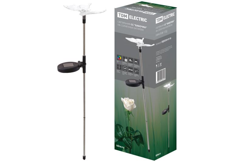 Светильник СС "Бабочка" на солнечных батареях, сталь, меняет цвет, TDM