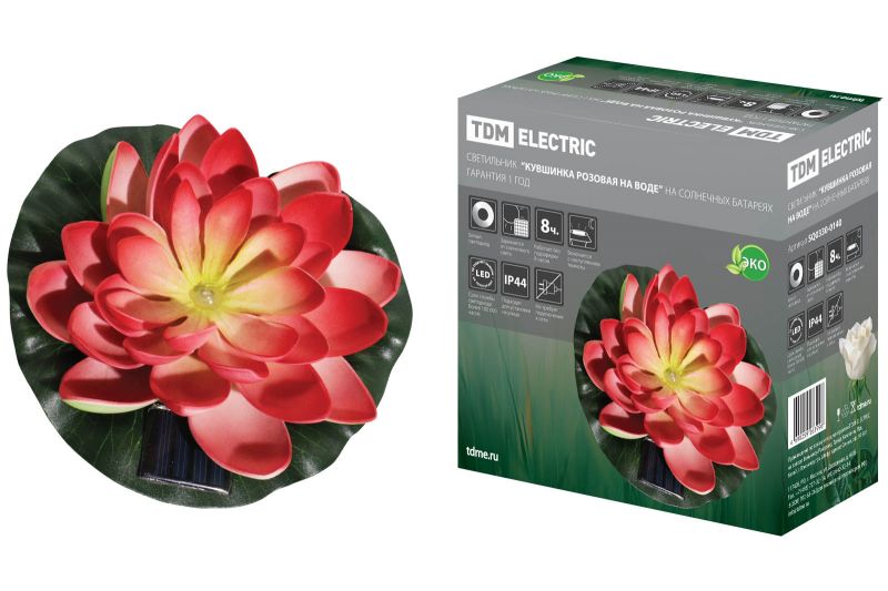 Светильник "Кувшинка розовая" на солнечных батареях, меняет цвет, водный, TDM