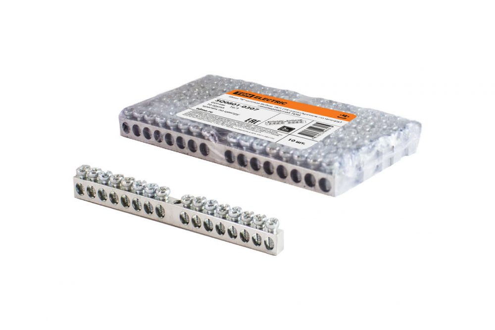 Шина "N" нулевая 6х9мм 16/1 (16 групп/крепеж по центру) никелированная TDM