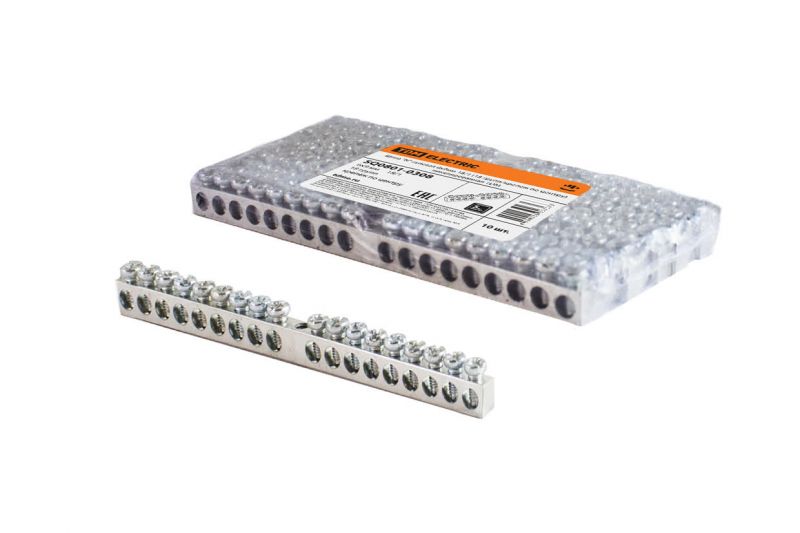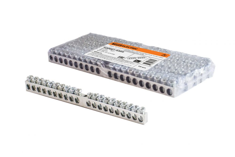 Шина "N" нулевая 6х9мм 20/1 (20 групп/крепеж по центру) никелированная TDM
