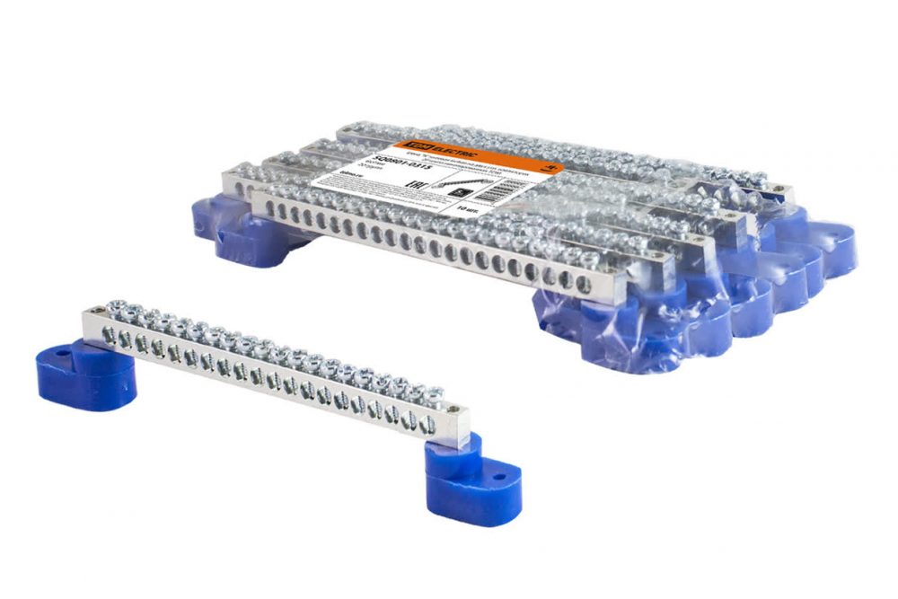 Шина "N" нулевая с изолятором на DIN-рейку 6x9мм стойка бол. 22 групп никелированная TDM