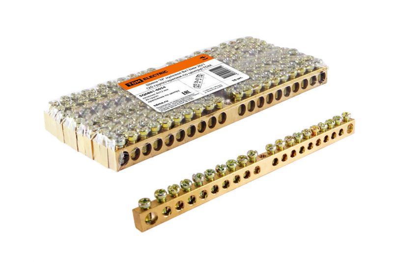 Шина "N" нулевая 6х9мм 10/2 (10 групп/крепеж по краям) TDM инд. стикер TDM