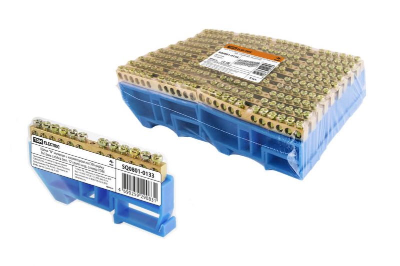 Шина "N" нулевая с изолятором на DIN-рейку 8x12мм стойка бол. 12 групп инд. стикер TDM