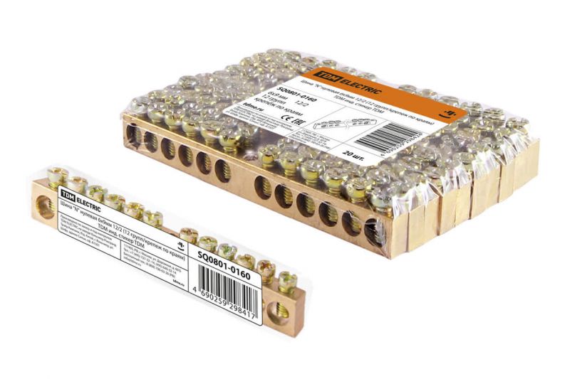 Шина "N" нулевая 6х9мм 12/2 (12 групп/крепеж по краям) TDM инд. стикер TDM