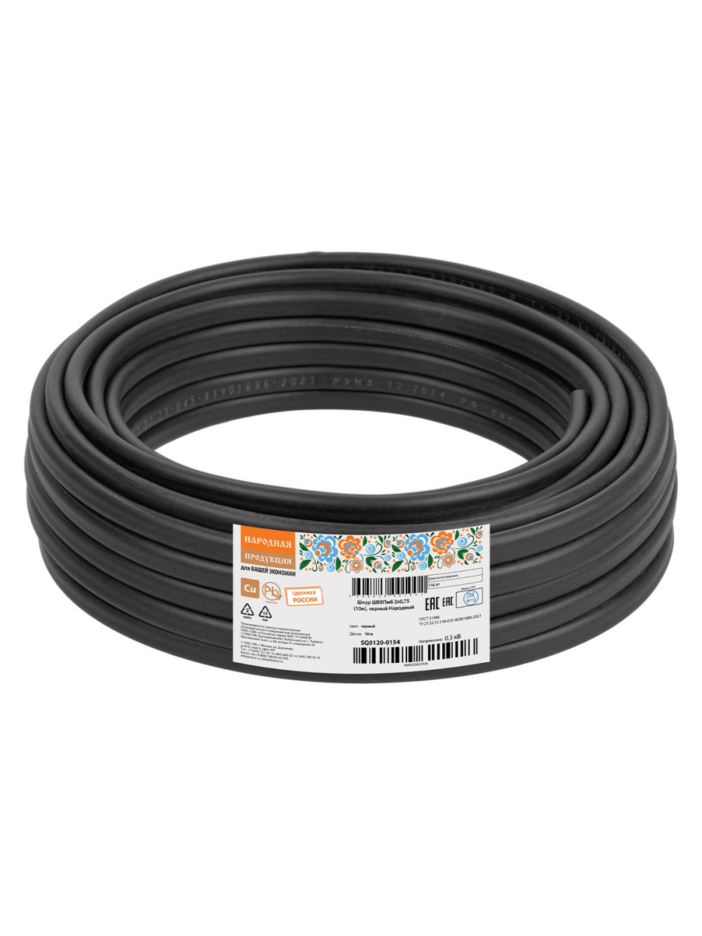 Шнур ШВВПмб 2х0,75 (10м), черный Народный