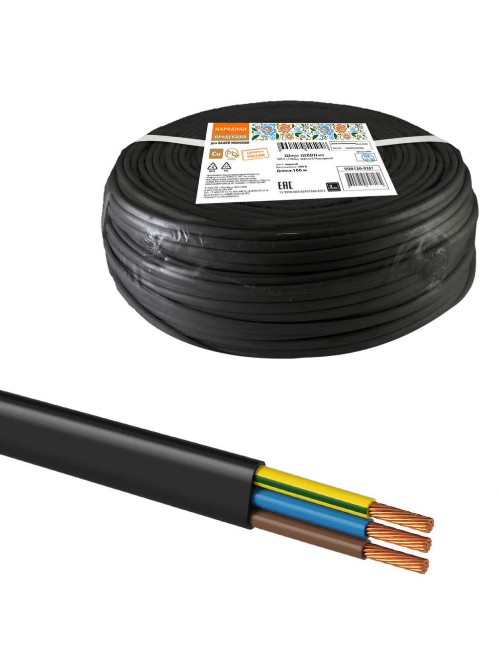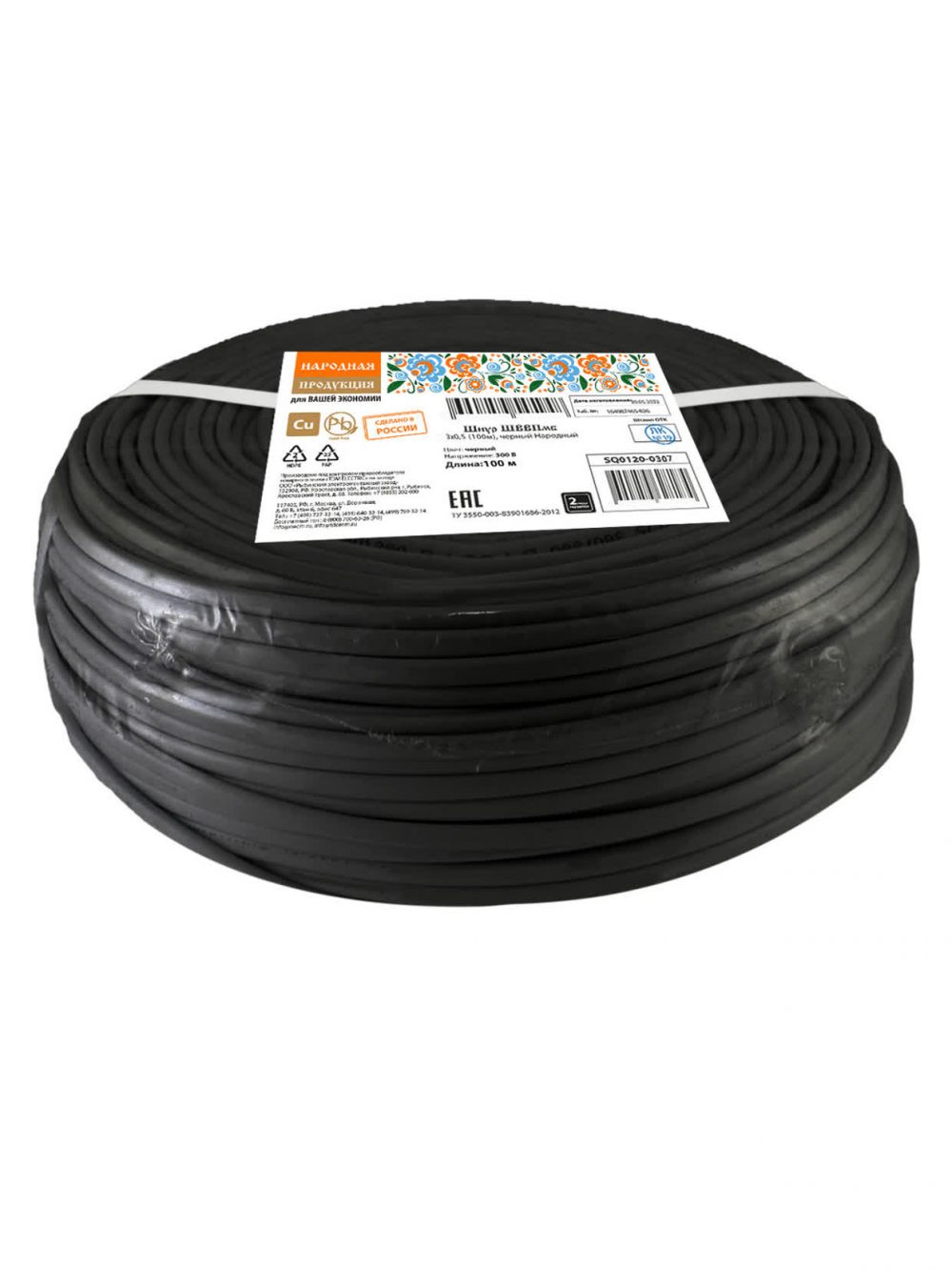 Шнур ШВВПмб 3х0,5 (100м), черный Народный
