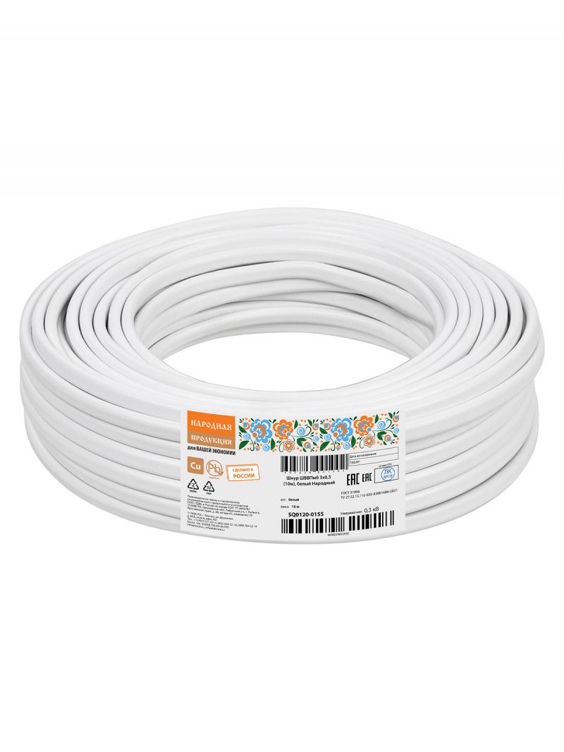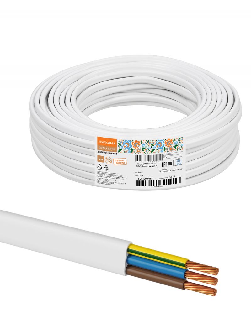 Шнур ШВВПмб 3х0,5 (10м), белый Народный