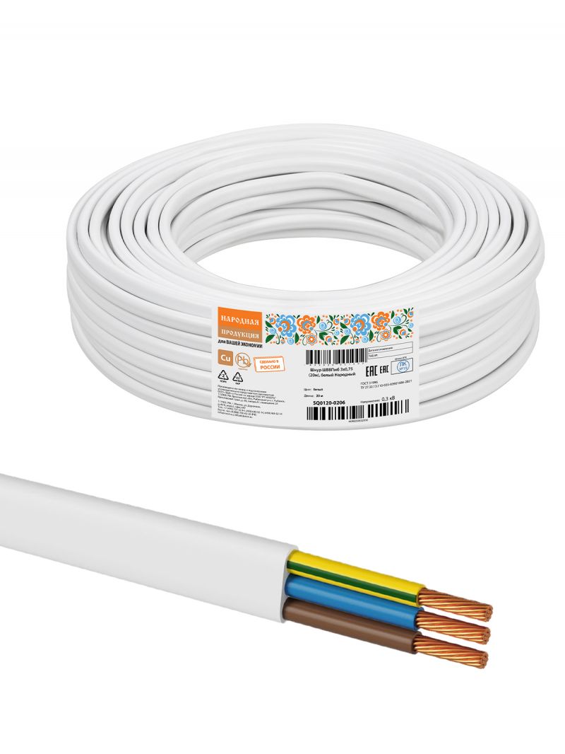 Шнур ШВВПмб 3х0,75 (20м), белый Народный