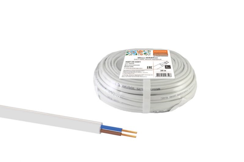 Шнур ШВВПмб 2х0,75 (20м), белый Народный