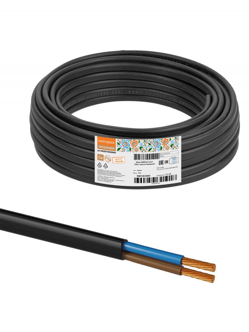 Шнур ШВВПмб 2х0,5 (20м), черный Народный