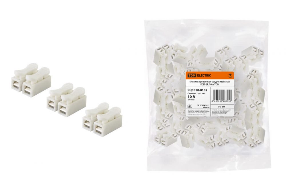 Клемма пружинная соединительная КСП-2P, 10 A TDM