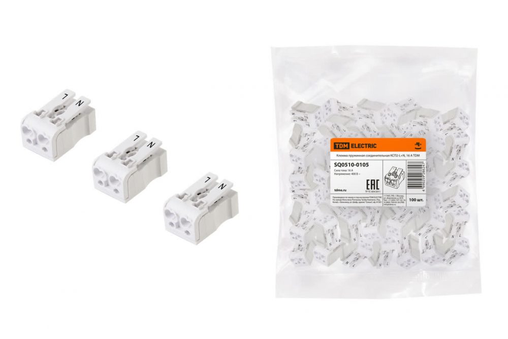 Клемма пружинная соединительная КСП2-L+N, 16 A TDM