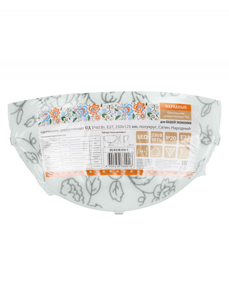 Светильник декоративный СД 1*60 Вт, E27, 250 x125 мм, полукруг, Сатин, Народный