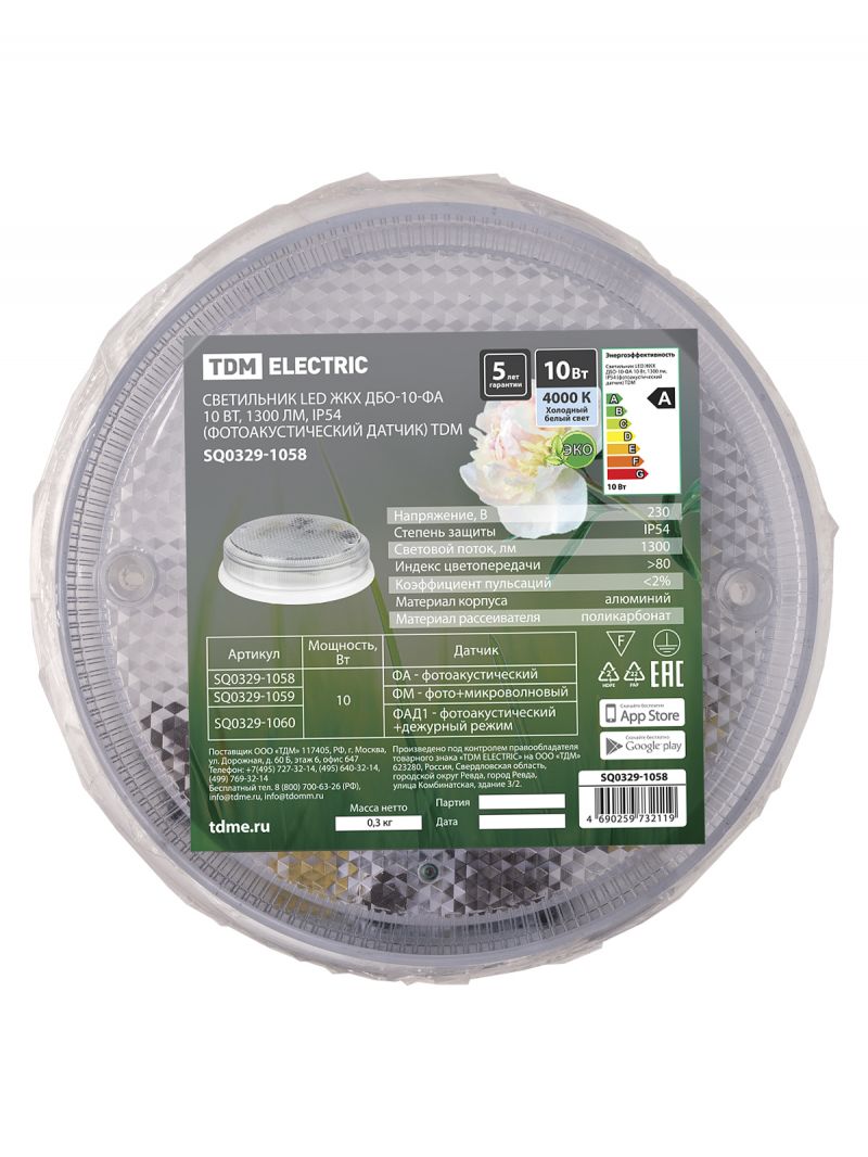 Светильник LED ЖКХ ДБО-10-ФА 10 Вт, 1300 лм, IP54 (фотоакустический датчик) TDM
