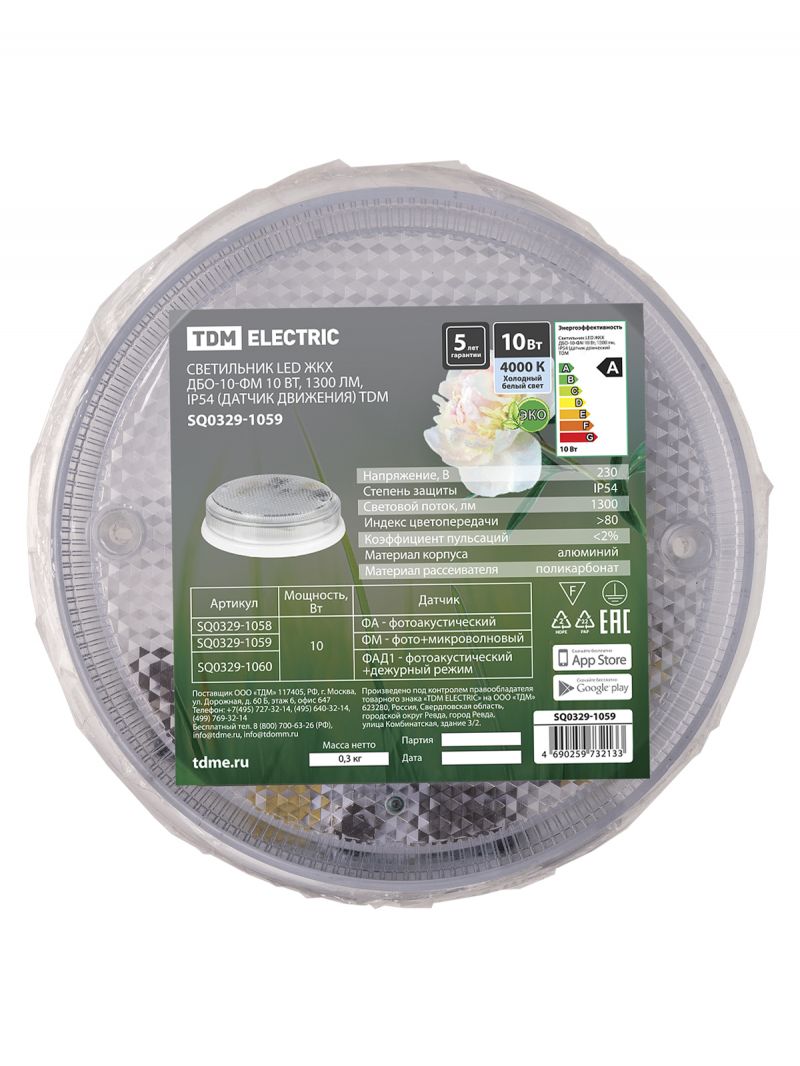Светильник LED ЖКХ ДБО-10-ФМ 10 Вт, 1300 лм, IP54 (датчик движения) TDM