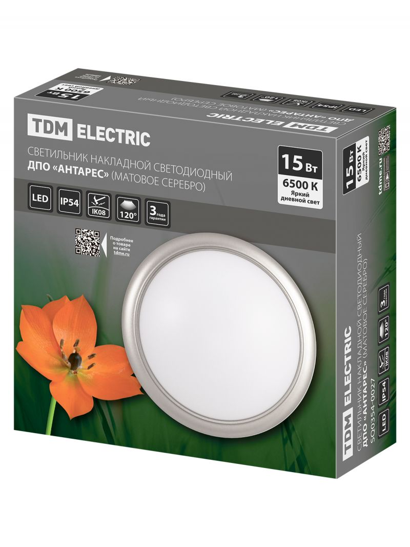 Светильник накладной LED ДПО "Антарес" 15Вт 6500К круг 180*66 мм мат.серебро IP54 TDM