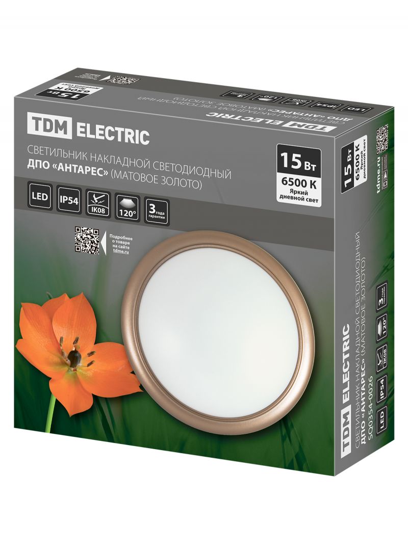 Светильник накладной LED ДПО "Антарес" 15Вт 6500К круг 180*66 мм мат.золото IP54 TDM