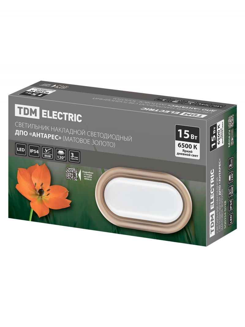 Светильник накладной LED ДПО "Антарес" 15Вт 6500К овал 221*131*68 мм мат.золото IP54 TDM