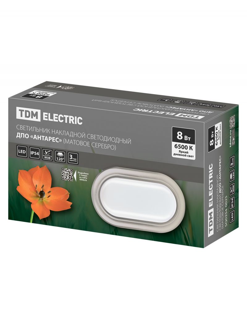 Светильник накладной LED ДПО "Антарес" 8Вт 6500К овал 168*100*58 мм мат.серебро IP54 TDM