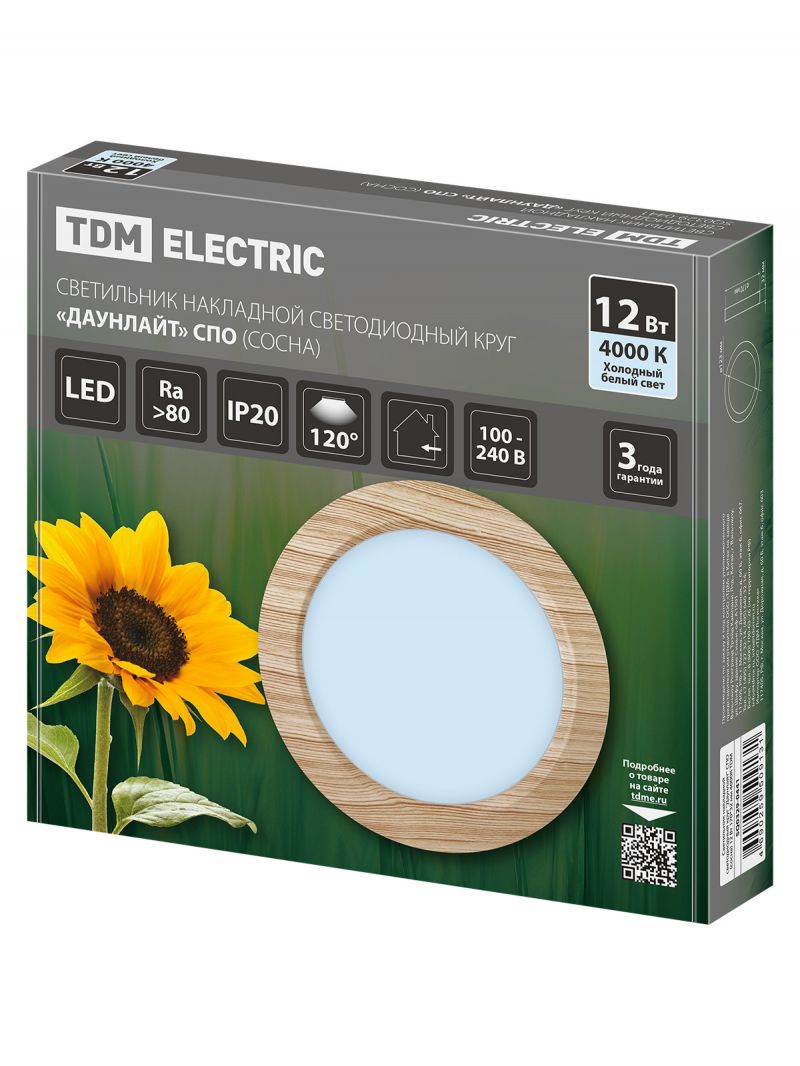 Светильник накладной светодиодный круг "Даунлайт" СПО (сосна) 12 Вт 170*32 мм 4000К TDM
