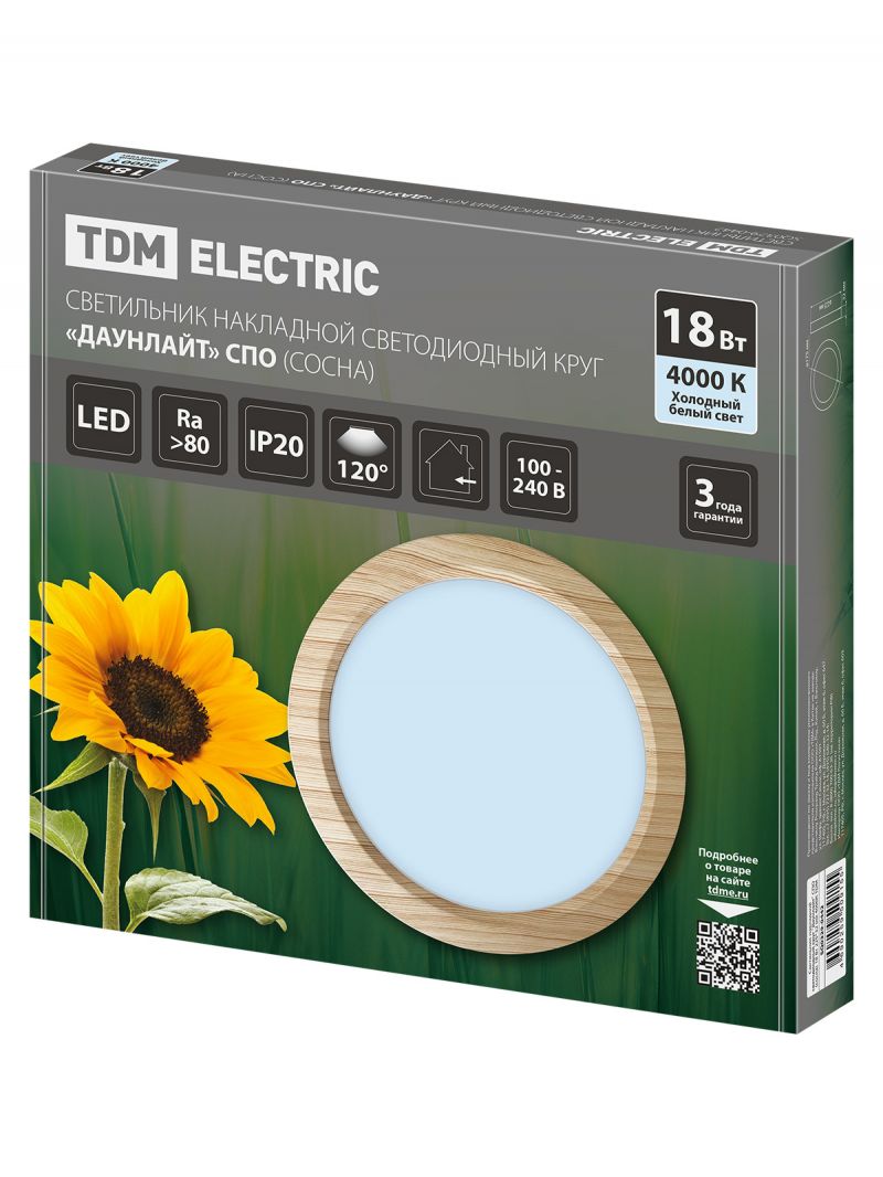 Светильник накладной светодиодный круг "Даунлайт" СПО (сосна) 18 Вт 225*32 мм 4000К TDM